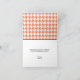 Ces cartes de remerciement toutes fins et élégantes sont conçues avec des lettres "merci" en caractères orange italique en gras dans un demi-cercle blanc sur un motif orange et blanc. Ce motif est un choix élégant pour les Fêtes des mariées et les anniversaires. L'intérieur est imprimé sur mesure avec votre propre texte, ou le texte modèle peut facilement être supprimé pour laisser l'intérieur de ces cartes en blanc pour écrire à la main vos sentiments de remerciements. Pas de commande minimum. Des remises en vrac s'appliquent.