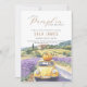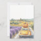 Une invitation élégante et joliment neutre pour les femmes avec "Un petit Citrouille est en route" avec une vue magnifique sur la campagne - une voiture classique qui roule le long des champs de lavande avec un citrouille mignon au sommet !
