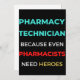 Pharmacy Technician Because Even Pharmacists Need Heroes design. This is a short funny quote which is great as an appreciation gift for Pharmacy Technicians. Also suitable as Pharmacy Technician Gifts.