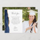 Envoyez à votre famille et à vos amis un message de remerciement spécial pour la remise des diplômes avec ces cartes photo personnalisées. Sur la gauche, les mots "merci" apparaissent dans une typographie élégante gris charbon en écriture manuscrite sur fond blanc, accompagnés d'un bref message de remerciement éditable à vos invités de la fête de remise des diplômes en police copperplate, avec votre nom en dessous. Une bordure d'agate aquarelle bleu marine ornée de paillettes dorées fausses décore le bord gauche. Ajoutez une photo verticale sur le devant et une deuxième photo horizontale au verso de la carte.