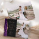 Envoyez à votre famille et à vos amis un remerciement de mariage spécial avec ces cartes photo personnalisées. Sur la gauche, les mots "merci" apparaissent dans une typographie élégante de couleur rose en écriture manuscrite sur un fond noir ardoise, accompagnés d'un bref message éditable de remerciement à vos invités de mariage en police copperplate, avec vos noms en dessous. Une bordure d'agate aquarelle violette, ornée de paillettes de fausse dorure rose, décore le bord gauche. Remplacez facilement l'image de droite par votre photo de mariage verticale. Le verso offre un espace pour une deuxième photo horizontale.