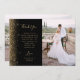 Envoyez à votre famille et à vos amis un mariage spécial merci avec ces cartes photos personnalisés. Une photo verticale apparaît sur la moitié droite. Sur la gauche, les mots "Merci" apparaissent dans une élégante typographie manuscrite couleur or sur un arrière - plan noir sur un bref message de remerciement, modifiable, à vos invités mariages en caractères compacts, avec vos noms ci-dessous. Une bordure de parties scintillant en faux or orne le bord gauche. L'envers offre de l'espace pour une seconde photo horizontale.