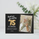 Elégante fête de 75e anniversaire, cartes de remerciement avec un arrière - plan noir élégant qui peut être changé à n'importe quelle couleur, une photo de la fille / garçon d'anniversaire, parties scintillant brillante or, soixante-quinze ballons d'hélium or, et un modèle de remerciement moderne qui est facile à personnaliser.