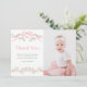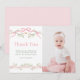 Cette carte de remerciement photo d'anniversaire de 1 an à plat comporte une bordure florale de fleurs rose et vert ornée de papillons et de rubans. Pour une personnalisation avancée de ce design, veuillez cliquer sur le BOUTON OUTIL DE DESIGN BLEU ci-dessus !