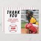 Carte de remerciement d'anniversaire de baseball avec photo, message de remerciement, nom et balles de baseball. La carte est dans un schéma de couleur blanc, rouge et noir. Au dos de la carte se trouvent des bandes rouges sur fond blanc. Carte de remerciement photo - ajoutez la photo de vos enfants au modèle. Personnalisez la carte avec le nom et votre texte. Idéal pour les enfants qui aiment le baseball et le sport.