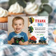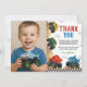 Envoyez un merci haute performance avec notre carte de remerciement photo d'anniversaire de camion monstre ! Avec des couleurs vives, des camions monstrueux puissants et des détails de course excitants, cette carte met en valeur la photo de votre enfant tout en exprimant sa gratitude avec style. Parfait pour l'anniversaire d'un garçon plein d'action, c'est un souvenir amusant que les invités adoreront !