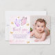 Carte De Remerciements Photo d'anniversaire rose violet papillon or fille