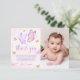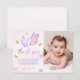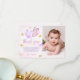 Carte de remerciement photo d'anniversaire rose violet papillon or fille premier anniversaire.