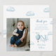 Cette charmante carte de remerciement photo pour le premier anniversaire présente un mignon ballon en montgolfière bleu et des nuages. Conçu par Thisisnotme©