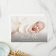 Carte de remerciement Photo de bébé avec écriture moderne. Au verso, il y a un message de remerciement générique que vous pouvez personnaliser ou supprimer si vous préférez écrire votre remerciement à la main.