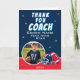 Carte de remerciement Photo de casque de ballon de football dessin animé entraîneur. Montrez votre appréciation avec cette carte de remerciement de football amusante et sincère conçue spécialement pour les entraîneurs ! Avec une illustration de dessin animé audacieuse d'un ballon de football et d'un casque en rouge, marine et blanc, cette carte est parfaite pour les équipes de jeunes ou les joueurs individuels. Idéal pour les cadeaux de fin de saison, ou juste pour dire merci à un entraîneur inspirant. Ajoutez votre photo et votre message à l'intérieur ou effacez-le.