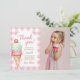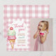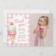 Carte de remerciement pour photo de fête d'anniversaire à carreaux rose avec noeud papillon et glace