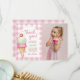 Carte De Remerciements Photo de fête d'anniversaire à carreaux rose avec