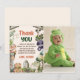 Carte de remerciement pour photo de fête d'anniversaire pour enfants sur le thème des reptiles mignons
