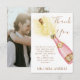 Notre carte de remerciement champagne pétillant présente un design moderne avec une bouteille de champagne en faux or. Ajoutez votre photo préférée au verso de la carte et vous avez terminé. Cette carte est le moyen idéal d'exprimer votre gratitude à vos proches qui ont contribué à rendre votre fête de fiançailles encore plus spéciale. Articles assortis en magasin Bigoldsoul