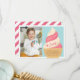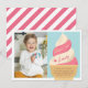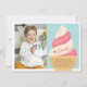 Conçues pour correspondre à nos invitations de fête d'anniversaire pour enfants à la glace à la vanille et à la fraise, ces jolies cartes de remerciement présentent un cône de glace à la vanille et à la fraise avec "merci" et une signature dans un style rétro vintage. Personnalisez avec une photo de fête d'anniversaire et un message pré-imprimé.