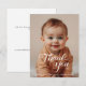 Cette carte de remerciement photo d'anniversaire moderne allie simplicité et élégance. Caractérisé par une écriture blanche fluide et épurée sur un fond de photo pleine page, ce design crée une façon sophistiquée et personnelle d'exprimer sa gratitude. La mise en page minimaliste met en avant le message et l'image, ce qui la rend parfaite pour ceux qui apprécient une esthétique épurée et contemporaine. Idéale pour une célébration d'anniversaire, cette carte garantit que votre note de remerciement soit mémorable et élégante.
