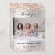 Un carte photo de Merci de Fête des mariées moderne. Un arrière - plan faux argenté décoré de parties scintillant rose en faux or, brille. Personnalisez et ajoutez votre photo et merci note.