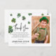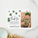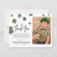 Merci à la famille et aux amis avec cette carte de remerciements à thème irlandais symbolique. Desgin présente une photographie de votre être aimé sur un arrière - plan blanc classique décoré de shamrocks d'aquarelle verte, le MERCI de cap et un message de remerciement qui peut facilement être personnalisé.