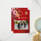 Cette carte de remerciement de mariage traditionnelle chinoise présente un signe de double bonheur coloré et doré sur un fond rouge scintillant. Avec des mots de remerciement traditionnels chinois, des mots anglais dans un script manuscrit moderne élégant, votre photo et vos noms et date de mariage.