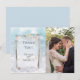 Ajoutez votre photo de mariage à ce thème de plage, merci pour un souvenir mémorable pour vos invités. Un élégant berceau de plage en bois flotté et en tulle vaporeux flottant dans la brise présente des fleurs de magnolia pâles et des vignes, le tout installé sur une plage de sable avec des vagues d'eau blanche. Derrière, un beau ciel bleu avec des nuages duveteux. L'illustration originale a été créée spécialement pour le BarefootBride™ par © WhimsicalArtwork™ - Cela fait partie d'une suite complète de papeterie de mariage avec des invitations de mariage, de baby shower et d'autres événements assorties.