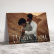 Elégante carte de remerciement de mariage avec votre photo mariage horizontale à fond de sang avec "Merci" en lettres blanches. Personnalisez l'avant du carte de remerciements photo moderne avec votre nom. L'intérieur du carte de remerciements mariage photo affiche votre message personnalisé en lettres noires.