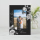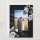 Carte De Remerciements Photo de mariage floral élégant en noir et blanc