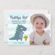 Carte De Remerciements Photo Dinosaure Bleu Mignon Kawaii Amusant Anniver