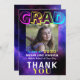 Un néon branché dans le carte de remerciements coloré foncé de fin d'études secondaires de 8ème année avec photo personnalisée.