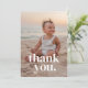 Une carte de remerciement de anniversaire moderne, avec votre propre photo et les mots 'merci.' en haut. Vous pouvez télécharger votre propre photo et modifier le texte si vous le souhaitez. Ce design a été laissé vierge au dos pour que vous puissiez écrire.