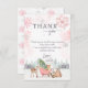 Ce carte de remerciements de baby shower de fille rose boisé hivernal correspond à la collection Baby It's Cold Outside Woodland Invitation Collection. Il comporte "Merci" dans les polices mignonnes avec votre message de remerciement. Des animaux de bois douces à l'aquarelle dans un traîneau entouré de montagnes et de flocons de neige raviront tous.