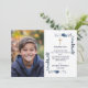 Cette élégante carte de remerciements botanique bleu marine de première communion sainte peut être personnalisée avec la photo spéciale de votre enfant et message de remerciement mis dans la typographie marine chic. Conçu par Thisisnotme©