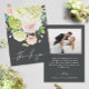 De belles aquarelles blanches et vertes avec des roses roses et crème, des marguerites, des petites fleurs et des feuilles sont présentées sur le devant de ces mariages légers onyx noir remerciement cartes. Votre photo et votre message sont imprimés au dos. CORRESPONDANCE d'objets dans notre collection.