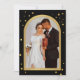 Carte de remerciements mariage avec votre photo personnalisée encadrée par un design noir et or avec confetti scintillant.
