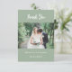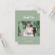 Célébrez votre journée spéciale et express votre gratitude sincère avec nos Cartes de Mariage Photo Personnalisées, élégamment conçu avec un arrière - plan vert sage sophistiqué et tendance. Parfaites pour partager vos souvenirs mariages préférés, ces cartes sont à la fois élégantes et personnelles, offrant une façon unique de remercier vos invités. Personnalisez et ajoutez votre photo et merci note. Texte blanc.