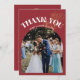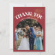 Express votre gratitude et merci à vos invités pour leur présence et de beaux cadeaux avec ce carte photo personnalisable avec un style rétro rouge élégant qui correspond à votre thème mariage. Ajoutez simplement vos photos mariages préférées (avant et arrière), changez les couleurs et écrivez votre propre message de remerciement.