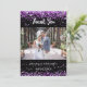 Célébrez votre journée spéciale et express votre gratitude sincère avec nos Cartes de Mariage Photo Personnalisées, élégamment conçu avec un arrière - plan noir sophistiqué et orné de confettis violets. Parfaites pour partager vos souvenirs mariages préférés, ces cartes sont à la fois élégantes et personnelles, offrant une façon unique de remercier vos invités. Personnalisez et ajoutez votre photo et merci note.