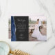 Envoyez à votre famille et à vos amis un mariage spécial merci avec ces cartes photos personnalisés. Sur la gauche, les mots "merci" apparaissent dans l'élégante écriture manuscrite gris argenté typographie sur un arrière - plan noir ardoise sur un message de remerciement bref et modifiable à vos invités mariages dans la police cuivre, avec vos noms ci-dessous. Une bordure en aquarelle bleu marine ornée d'une parties scintillant en faux argent décore le bord gauche. L'envers offre de l'espace pour une seconde photo horizontale.