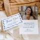 Montrez votre appréciation avec ce carte de remerciements moderne de graduation de cadre bleu. Doté de "Merci" en élégant écriture bleue manuscrite, ce design est encadré par une bordure ondulée bleue audacieuse contre un arrière - plan blanc pour un look élégant et contemporain. Personnalisez le front avec votre nom et votre année de graduation pour créer un souvenir significatif. À l'intérieur, mettez en surbrillance votre photo horizontale senior en haut, avec votre message personnalisé affiché en caractères bleus en gras ci-dessous. Parfait pour les diplômés du secondaire et du collège, ce carte de remerciements personnalisé apporte une touche classique et sophistiquée à votre gratitude.