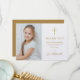 Doté d'un nom de signature de script doré. Personnalisez avec votre photo et la première communion sainte spéciale message de remerciement en lettres d'or chic sur ce design élégant. Conçu par Thisisnotme©