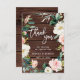 Ce carte photo mariage vous remercie dispose d'une couronne de fleurs d'aquarelle rose et blanc avec feuillage vert sur un arrière - plan rustique imprimé en bois. Pour une personnalisation plus avancée de cette conception, cliquez sur le lien Personnaliser supplémentaire pour modifier la police, la taille et la couleur.