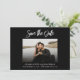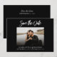 Partagez les nouvelles de votre prochain mariage avec cette simple carte de sauvegarde en noir et blanc. Customisez le texte à l'avant et à l'arrière pour partager tous les détails de votre journée spéciale. Ajoutez une photo pour une carte de mariage unique et sauvegardez la date.