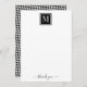 Un monogramme de police dessiné à la main moderne avec une police élégante pour customiser votre message de remerciement. Beaucoup d'espace vide pour la note manuscrite. Le dos de la carte de remerciements est orné d'un motif classique en pied de bois noir et blanc.