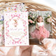Pink Bow Gingham Bunny 1st Birthday Thank You Card