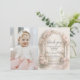 Personalize this elegant blush pink floral garden arch baptism/ christening photo thank you card with your own wording easily and quickly. Simply click the customize it further button to edit the texts, change fonts and fonts colors. Matching items available in store. (c) The Happy Cat Studio