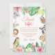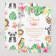 Send a heartfelt thank you to your guests with this adorable "Wild One" safari-themed birthday card. Featuring sweet watercolor jungle animals like a lion, panda, tiger, and giraffe, decorated with vibrant pink tropical flowers and lush greenery. This flat card is the perfect way to express gratitude for gifts and presence at your little girl's 1st birthday party. Easily customize the message and name to make it personal. The back features a matching cute animal and leaf pattern for a high-quality, coordinated look.