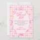 A sweet matching thank-you card featuring pink gingham, floral details, and soft bow accents. Perfect for expressing gratitude after your baby shower with a coordinated and elegant touch.