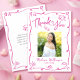 Carte De Remerciements Pink Hand Drawn Doodles Photo Graduate White Retro