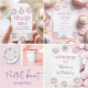 Célébrez l’anniversaire de votre petit de la façon la plus douce! Cette charmante conception d'anniversaire de beignes présente mon oeuvre originale d'aquarelle peinte à la main avec des beignets dépoli rose pastel et des arrosages colorés.