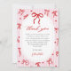 Pink Red Coquette Bow Valentine Baby Shower Thank You Card